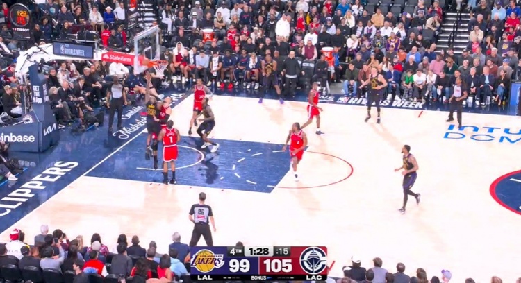 昨日洛杉矶德比,快船112-104力克湖人,NBA官方出具了本场比赛最后两分钟的裁判报告,共出现1次错判,对快船不利。