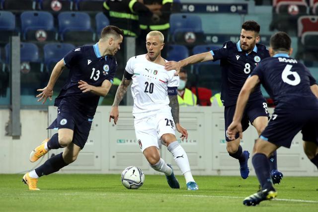 曼奇尼治下的国家队,面对弱队已经不知如何收手。圣马力诺加入了列支敦士登、亚美尼亚和摩尔多瓦的行列,蓝衣军团面对这些对手,都取得至少六球的狂胜。这一次,不一样的地方还在于,曼奇尼的球队是全替补阵容上阵。欧洲杯开幕近在眼前,撒丁竞技场的这场对决,是曼乔给国家队边缘人们最后安排的一次实验。